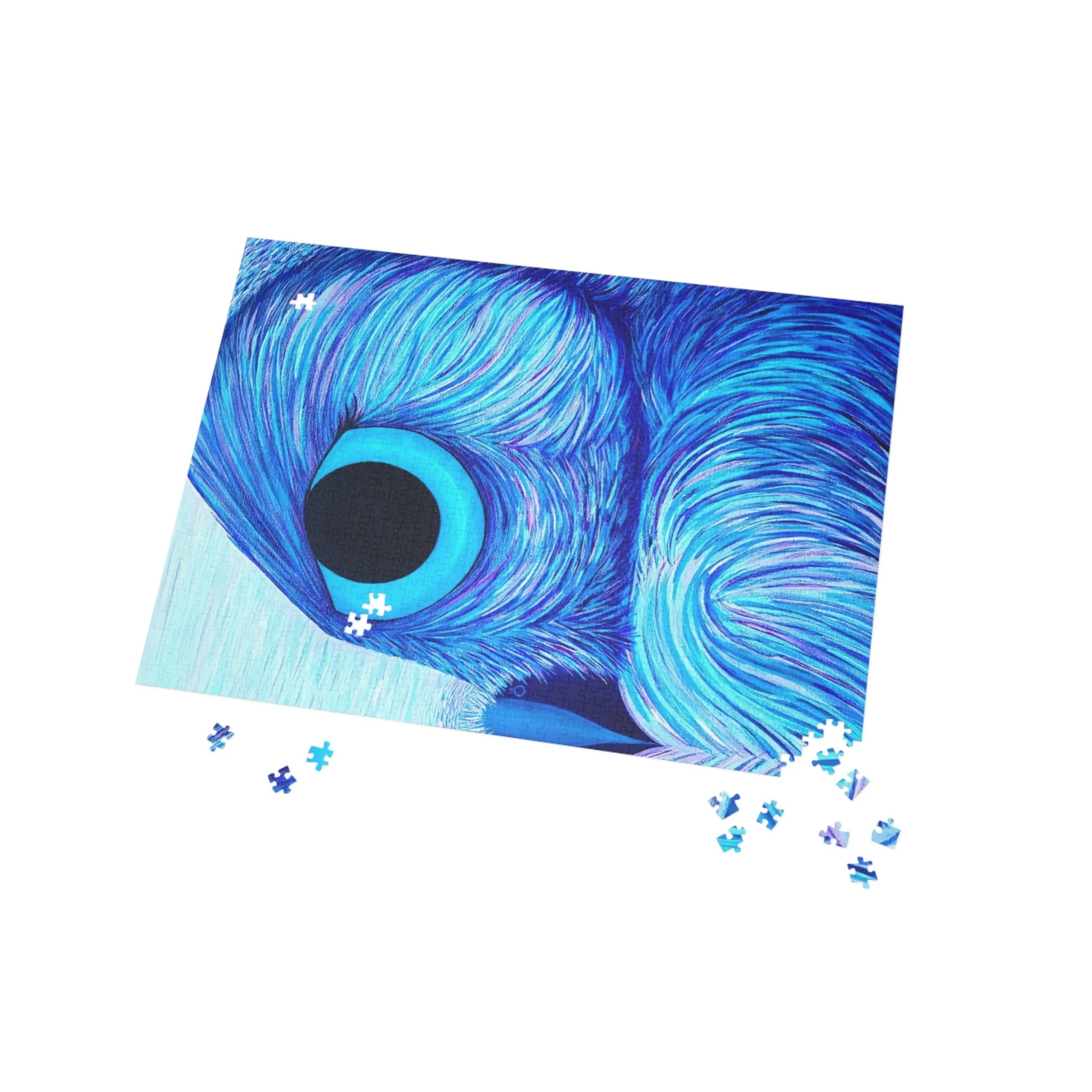 This puzzle invites you into a chilly, electric world where a winter owl stares with a striking, piercing eye. Rich blues and frosty whites blend into abstract feathers and snowfall, pulling you into a quiet, focused moment. As pieces click together, the owl’s fierce presence slowly emerges — thoughtful, intense, and beautifully strange. It’s the kind of project that suits late-night puzzling with a warm drink, a quiet weekend stretched out with tracked progress, or a thoughtful present for someone who loves birds, nature, and bold, contemporary art. The satin finish keeps colors vivid and details crisp, so each assembled section feels like a small discovery of texture and tone.