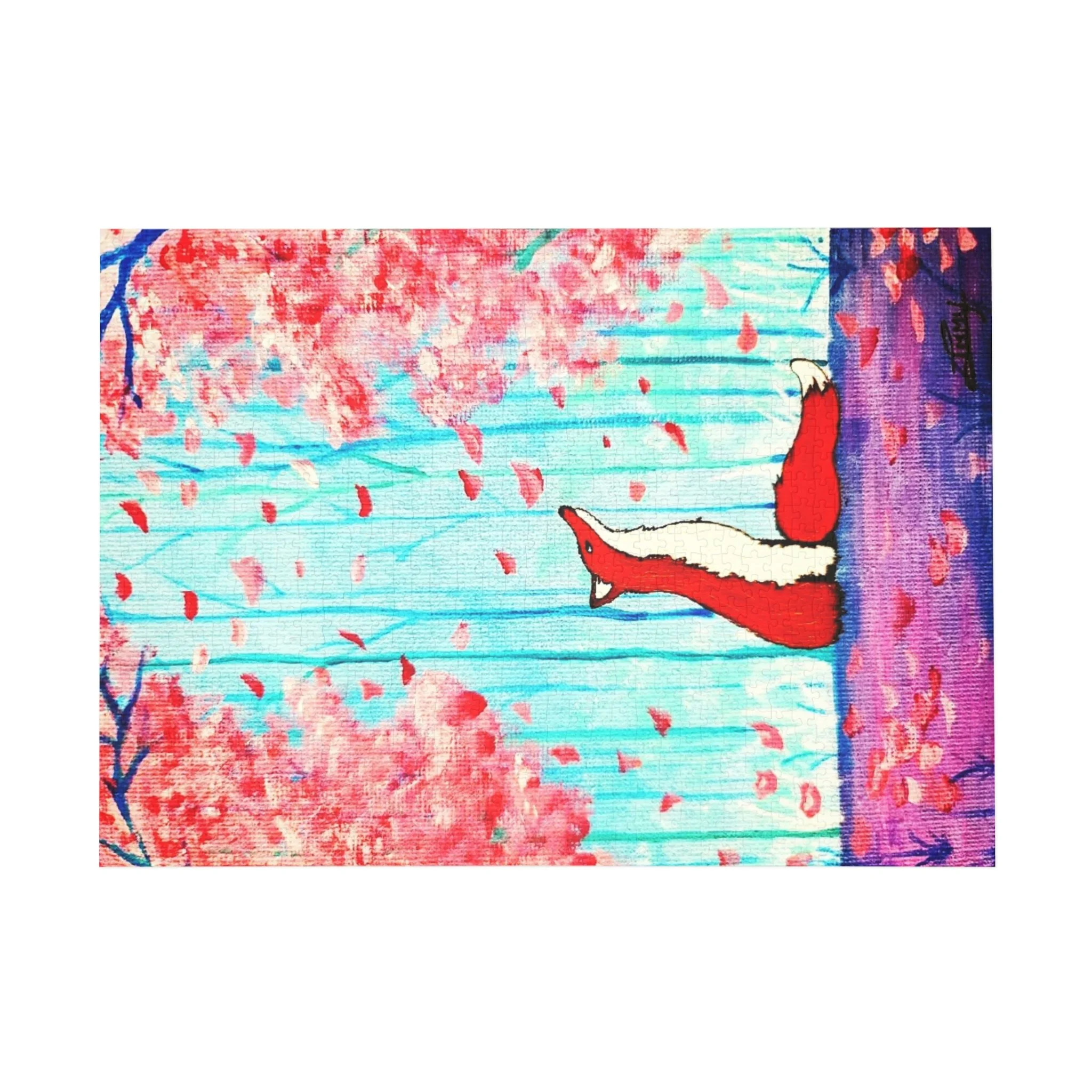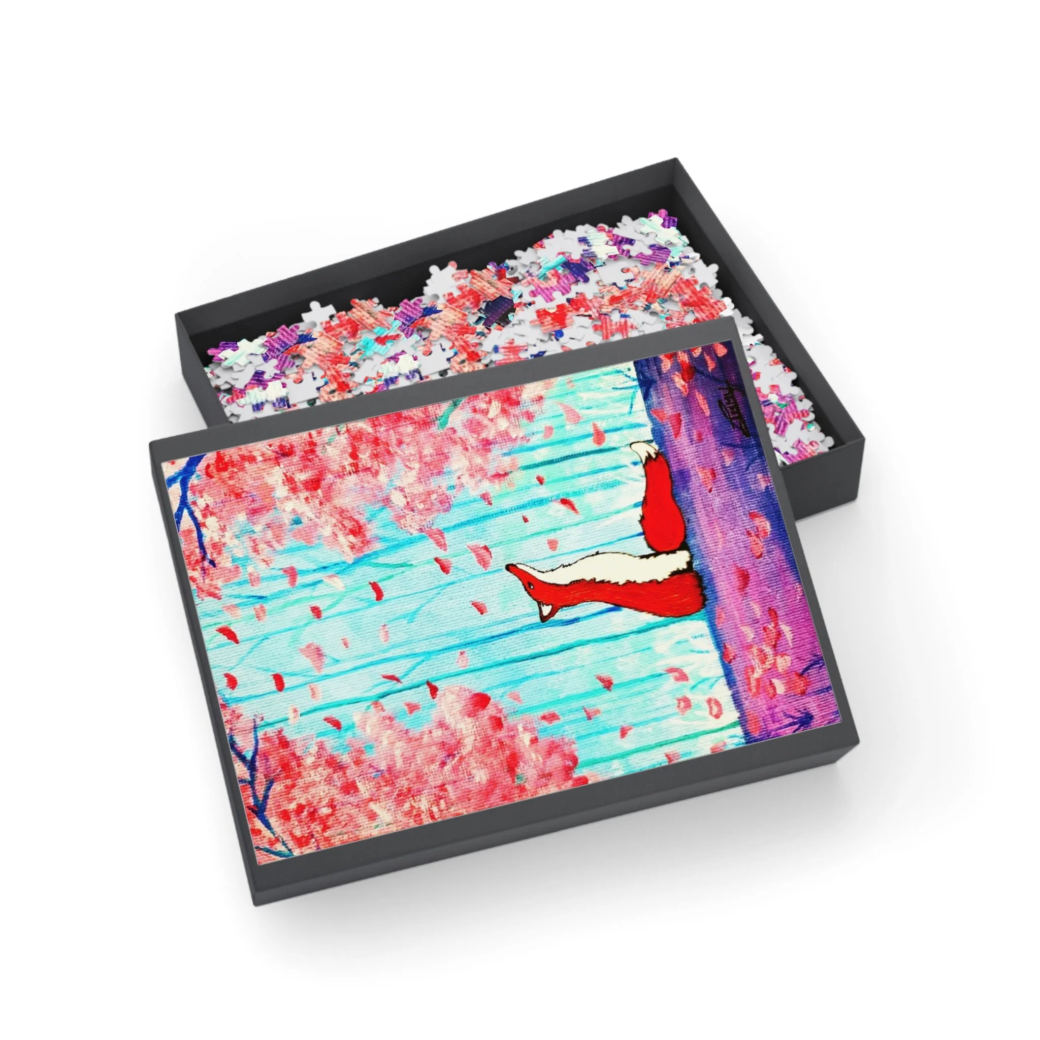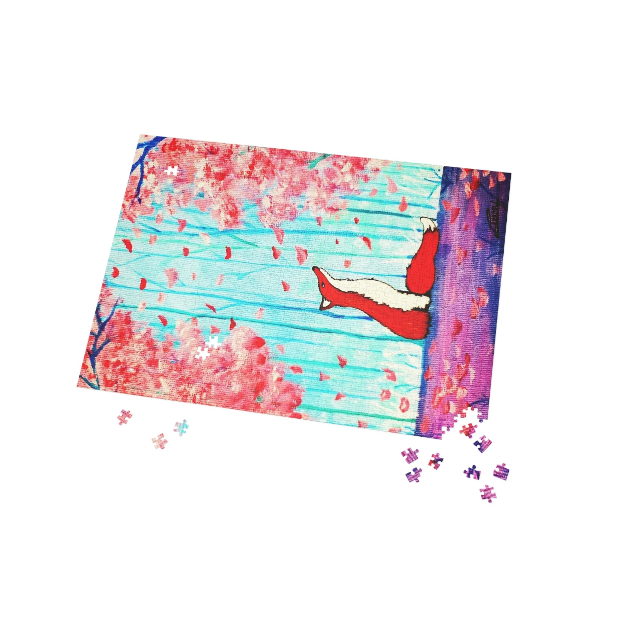 Lose yourself in a gentle wooded day where cherry blossoms drift like confetti and a curious fox pads through the cool-blue light. This puzzle brings the original artwork "Blossom" to life: a whimsical scene tucked among delicate blooms, soft cool tones that soothe the eyes, and playful details that reward slow, quiet focus. It’s for people who savor mindful, creative moments — those who appreciate cozy afternoons with a steaming mug, or calm evenings piecing together a scene that feels like a storybook come true. Bring this scene into your home when you want a calm, charming project to share or to keep for yourself. The finished image is both decorative and heartwarming, ready to display or revisit whenever you need a gentle, restorative pause.