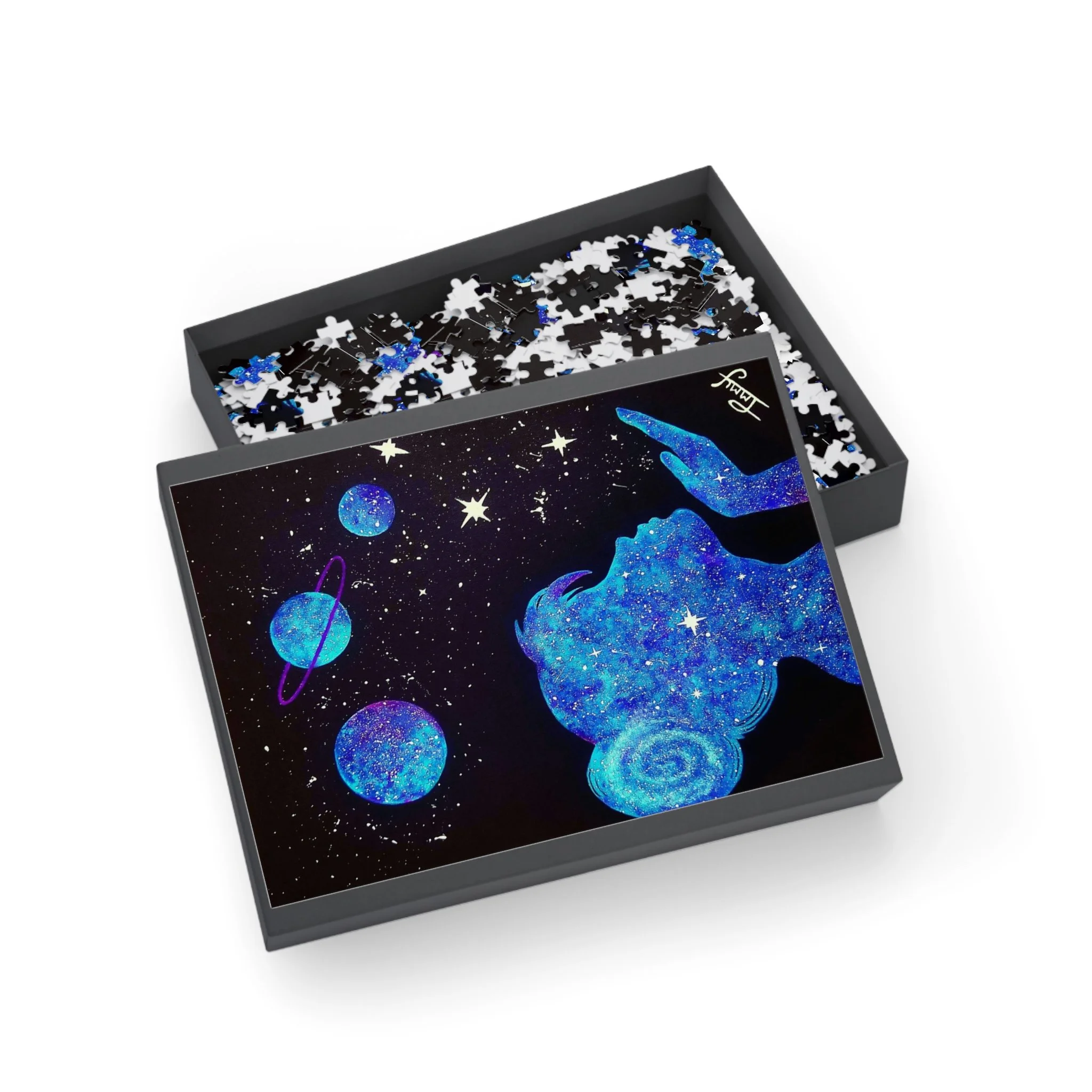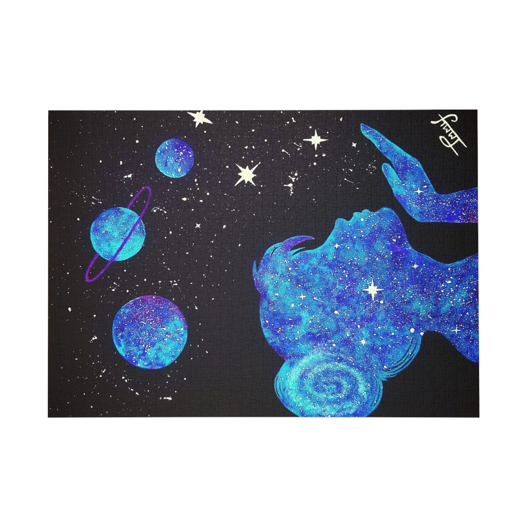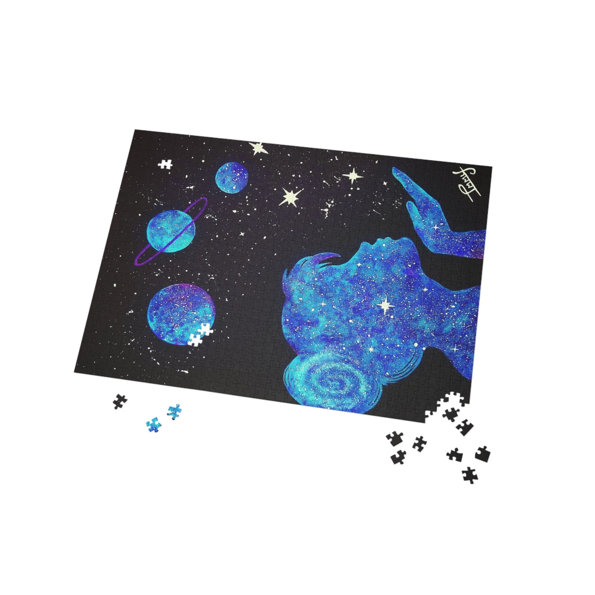 Lose yourself in Stardust — a celestial scene captured inside the silhouette of a girl, where the Milky Way spills across deep indigo and violet skies. Each piece reveals constellations, planets, and shimmering nebulae that gradually form a quiet, starry portrait. Working this puzzle feels like tracing a wish: slow, immersive, and slightly magical. It’s the kind of evening that turns into storytelling — nights bent over the table, soft lamp light, cups of tea cooling beside you as the galaxy comes together. For anyone who finds comfort in night skies and cosmic daydreams, this puzzle becomes more than a pastime; it’s a small ritual that invites wonder and calm.